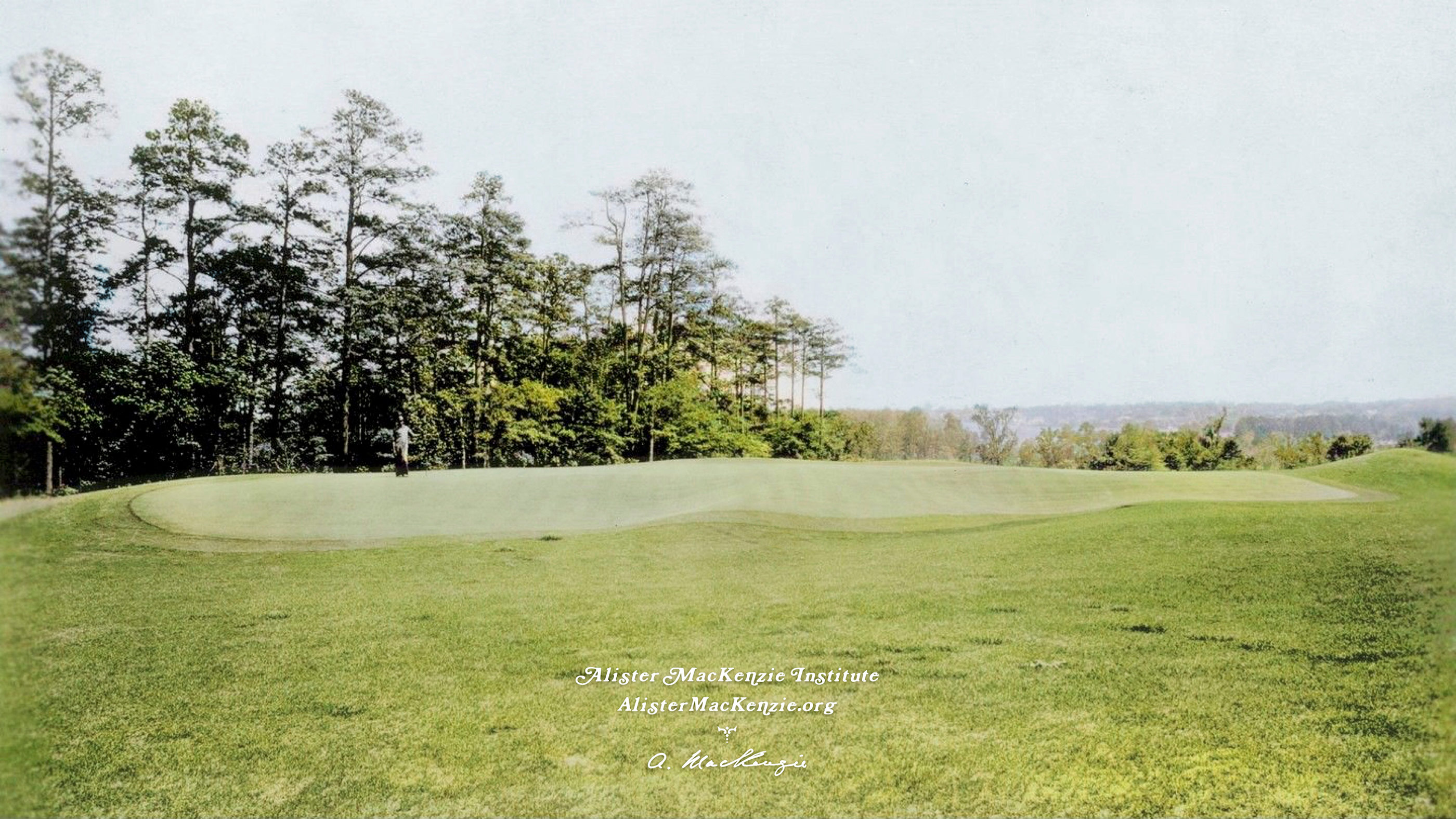 Alister MacKenzie (1932): “This will be a similar type of hole to the famous 17th, the Road Hole at St. Andrews. A group of trees forms a corner of the dogleg instead of the station master’s garden and the green itself will be situated on a similar plateau to its prototype.”