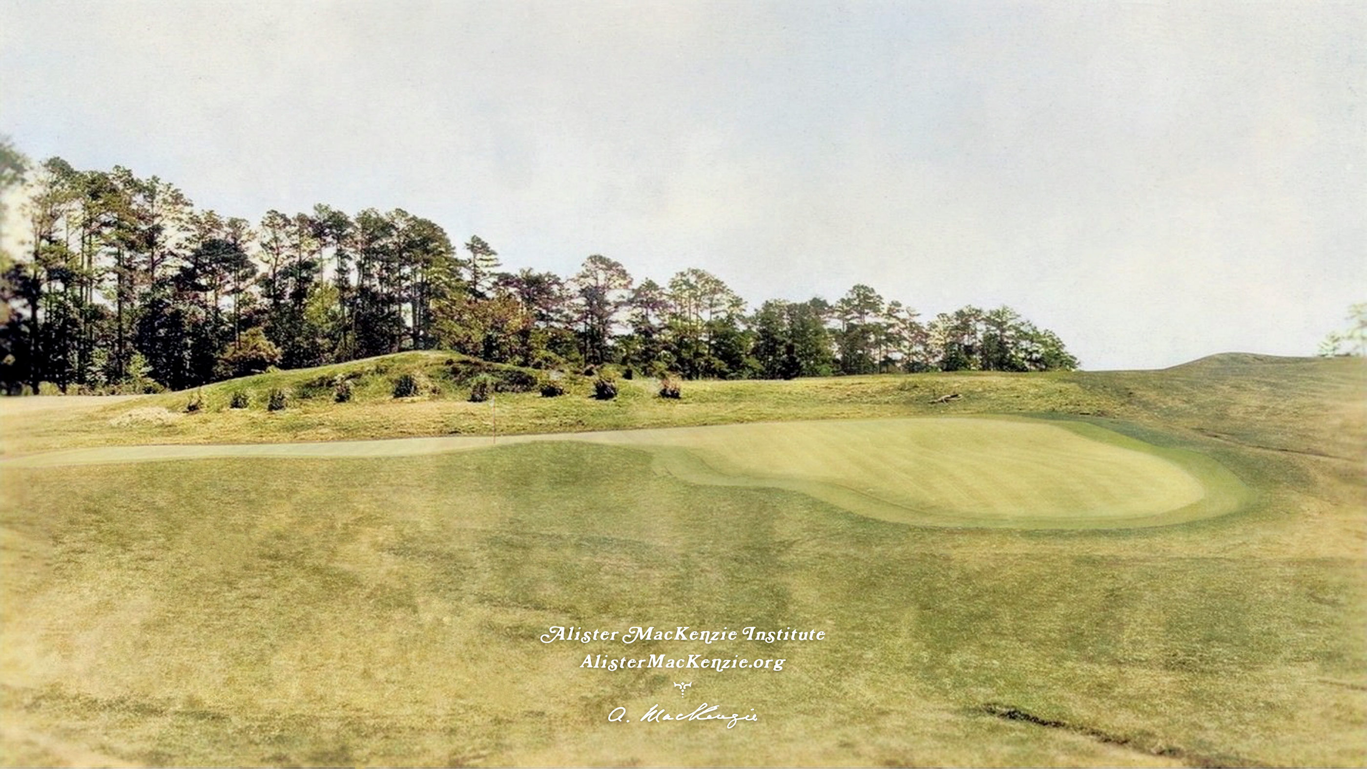 Colorized historic photo of the seventh green at Augusta National (Alister Mackenzie Institute)