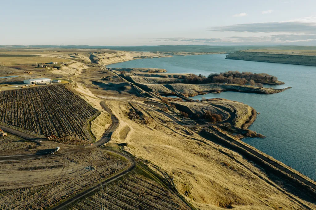 The property, formerly the site of a winery, features dramatic cliffs above the Snake River.