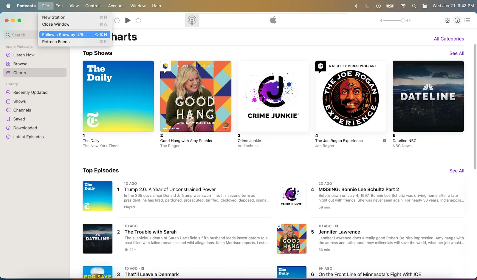 Apple Podcasts on Mac (iTunes on Windows)