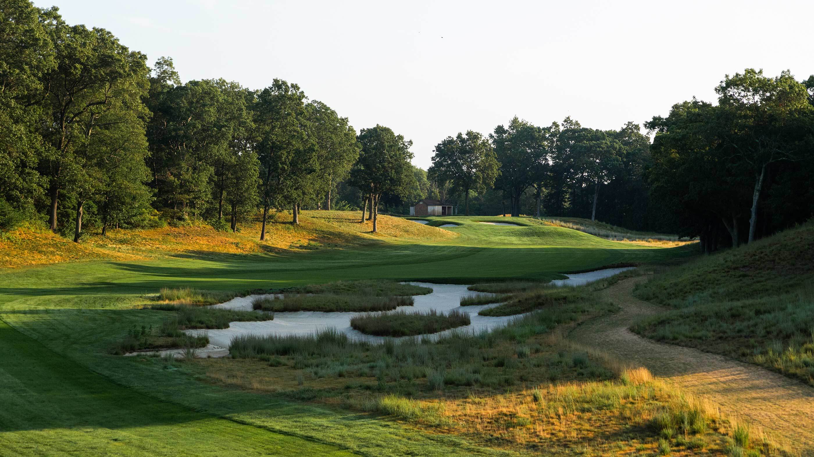 A brawny course, with treacherous bunkers, thick rough, and an expansive routing over hilly and forested Long Island terrain